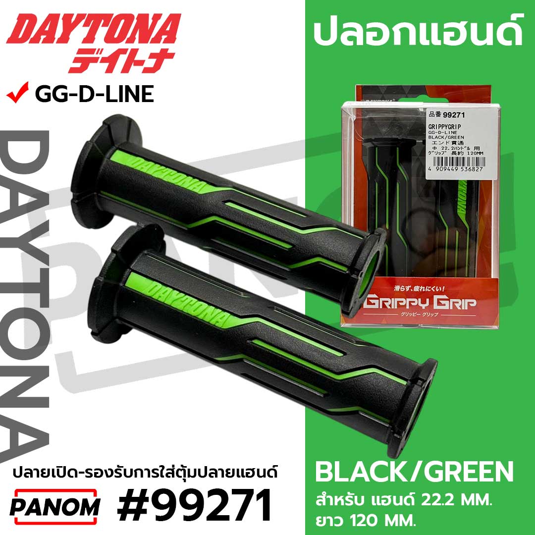 ปลอกมือ (DAYTONA JAPAN) GG-D-LINE #99271 ปลายเปิด (แฮนด์22.2mm) สีดำ/เขียว