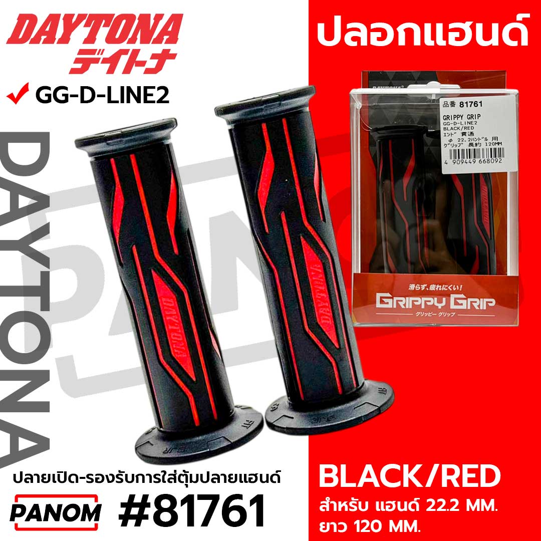 ปลอกมือ (DAYTONA JAPAN) GG-D-LINE2 #81761 ปลายเปิด (แฮนด์22.2mm) สีดำ/แดง