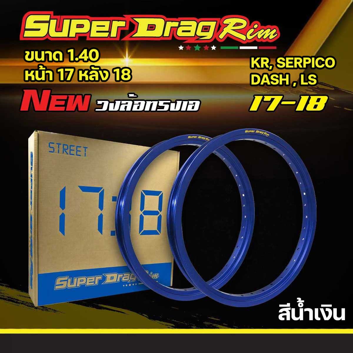 วงล้อ SUPER DRAG RIM รุ่น (ทรงA)SDR (F) 1.40-17: (R) 1.40-18 (หน้า17 หลัง18) KR น้ำเงิน