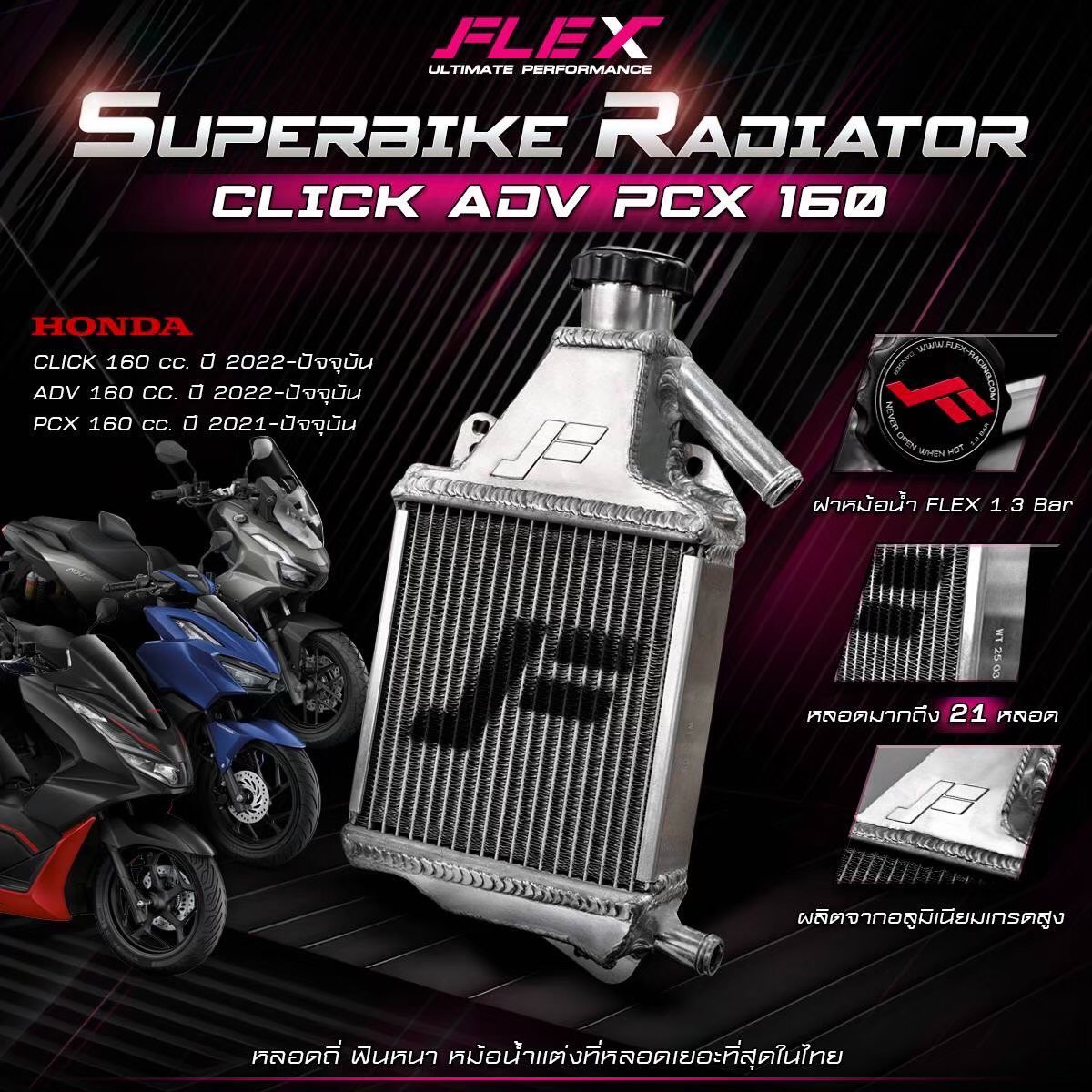 หม้อน้ำ อลูมิเนียม (FLEX) PCX160'22> ADV160'21> CLICK160'22> GIORNO+125 LEAD125 4V