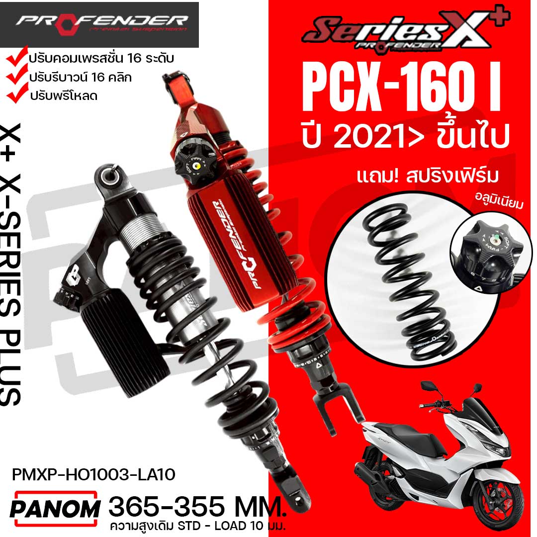 PROFENDER โช้คหลัง X+ X-SERIES PLUS HONDA PCX-160i ปี21ขึ้นไป STD-LOAD10มม สูง365-355มม PMXP-HO1003