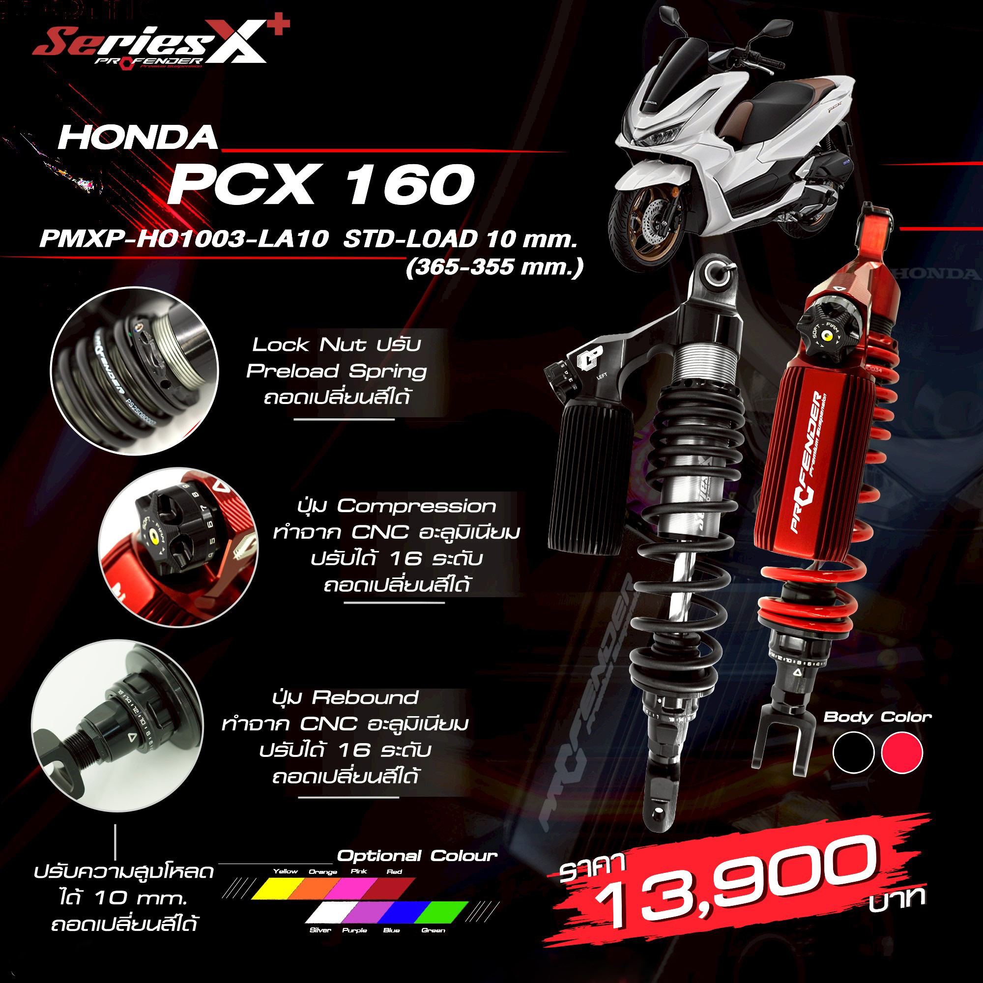PROFENDER โช้คหลัง X+ X-SERIES PLUS HONDA PCX-160i PCX160(21>) STD-LOAD10มม สูง365-355มม PMXP-HO1003