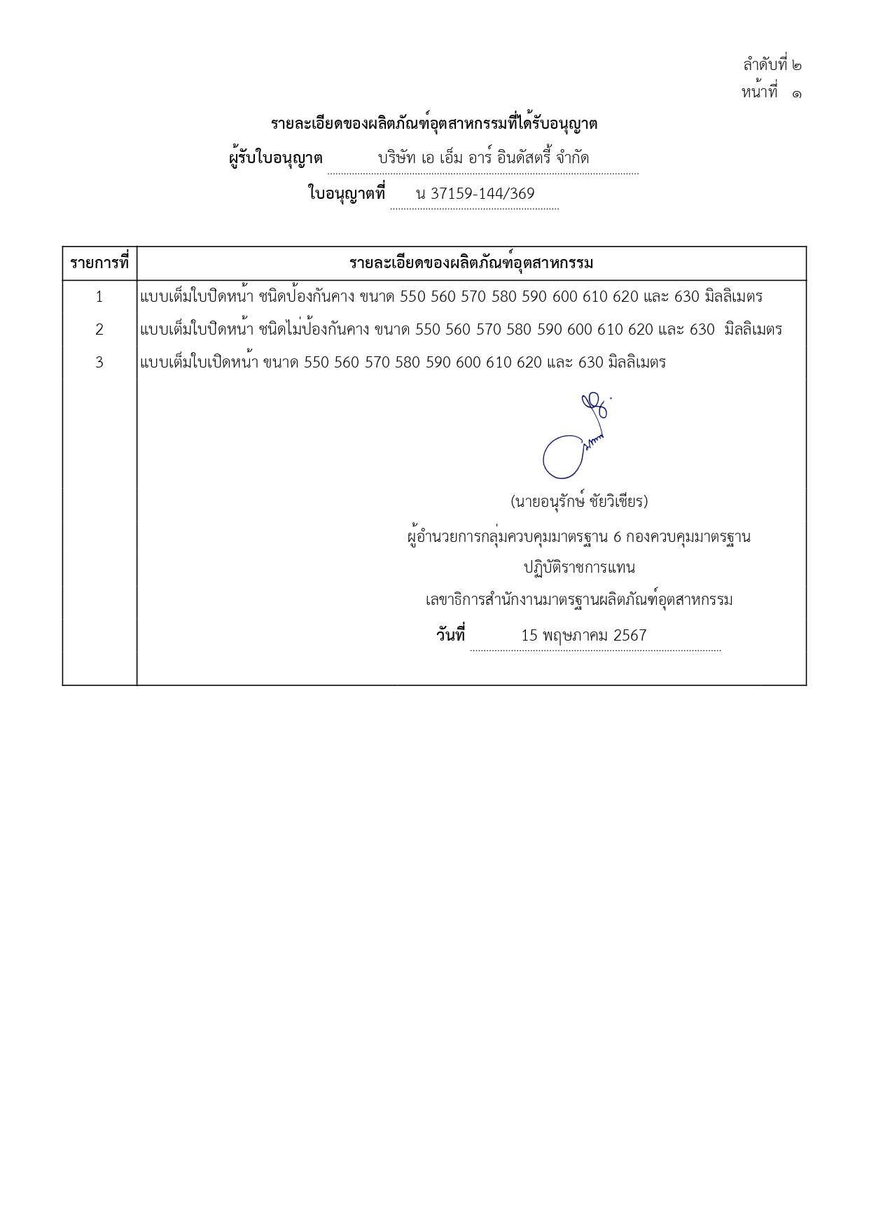 ข้อมูลผู้ได้รับอนุญาต : https://appdb.tisi.go.th/Q/i.php?d=440706230