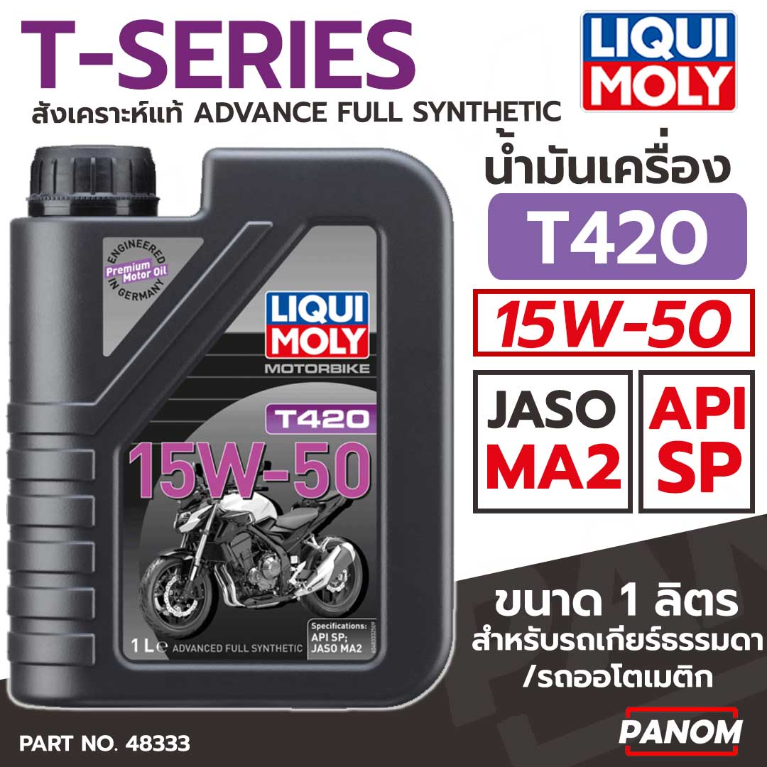 น้ำมันเครื่อง 4T LIQUI MOLY T420 T-SERIES SAE 15W50 สังเคราะห์แท้ 15W-50 ขนาด1L JASO MA2 (ต่อขวด)