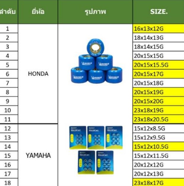 ตารางเทียบ เม็ดตุ้มถ่วงน้ำหนัก Michelin และสายพาน Michelin กับรุ่นรถ