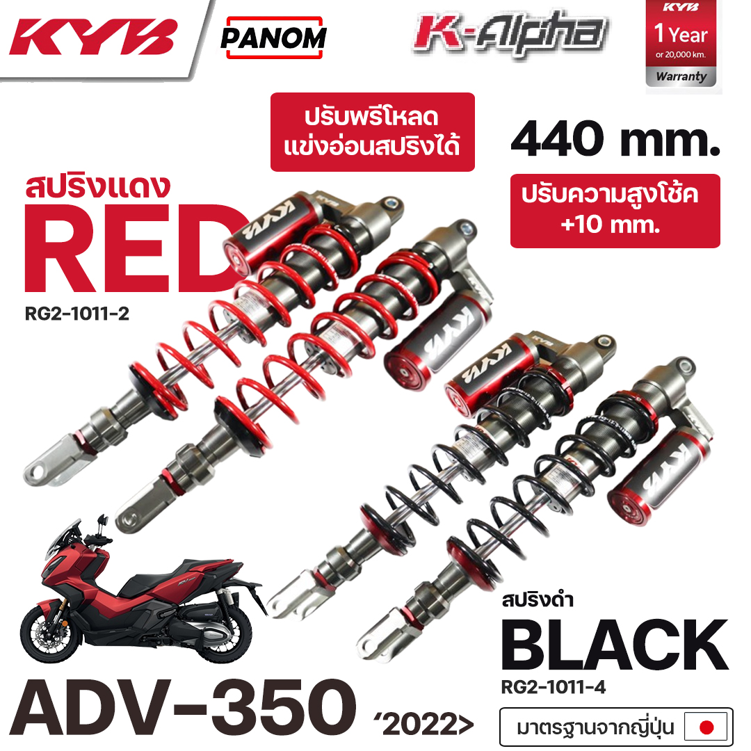โช้คหลัง KYB K-ALPHA KAYABA ADV-350 ปี2022> ขึ้นไป สูง440mm. RG2-1011 เลือกสีสปริงได้ คุณภาพญี่ปุ่น ปรับพรีโหลด