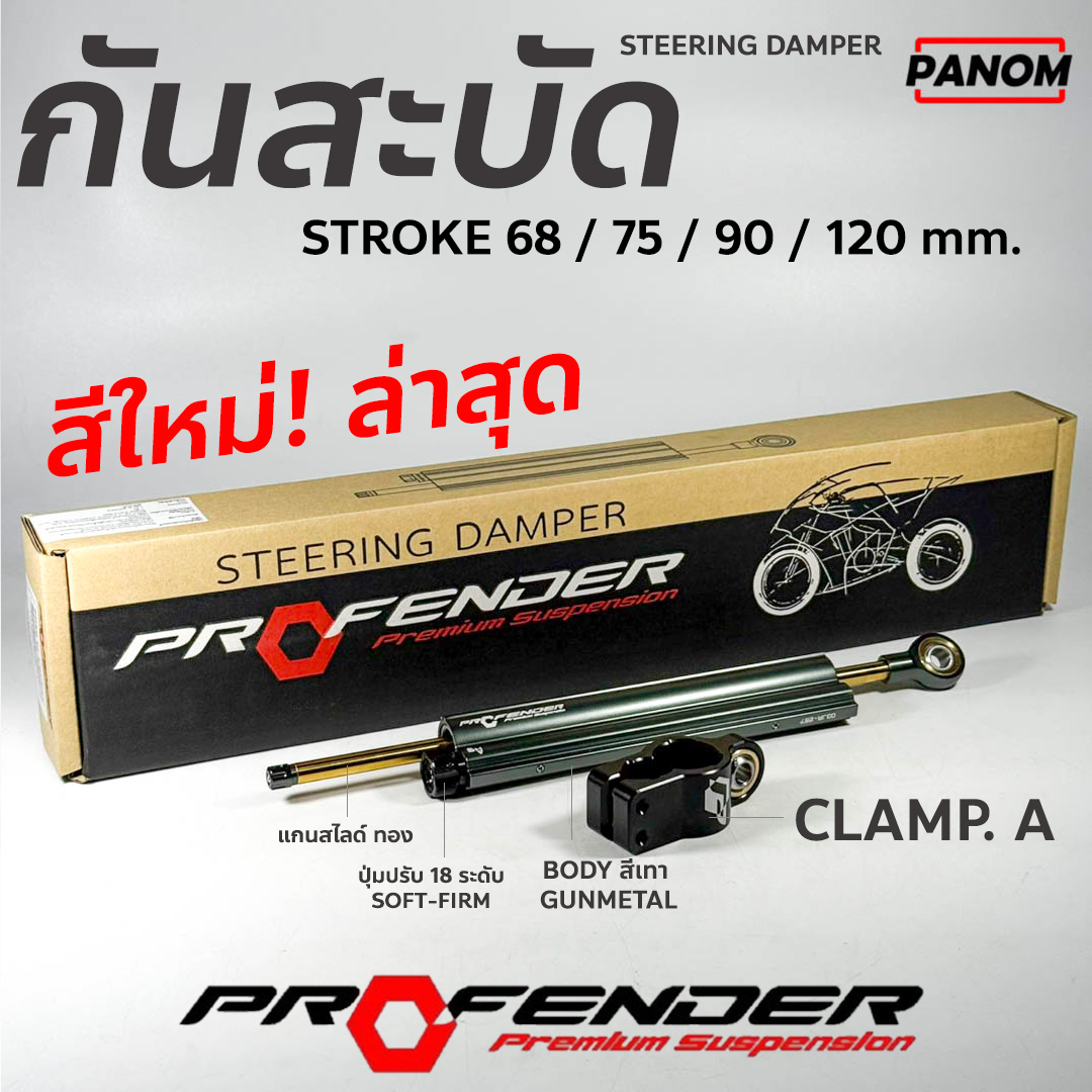PROFENDER กันสะบัด STEELING DAMPER CLAMP A แกนทอง เทาGUNMETAL หมุดดำ PMSD (GMMBK) 68/75/90/120mm.