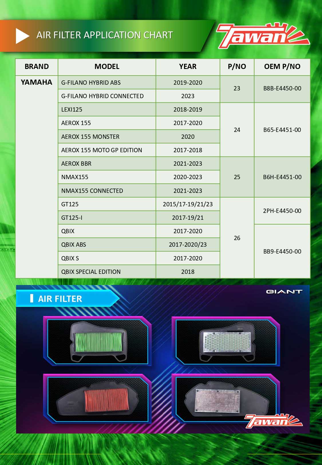 ตารางเทียบกรองอากาศ TAWAN กับ OEM ไส้กรองอากาศ HONDA YAMAHA