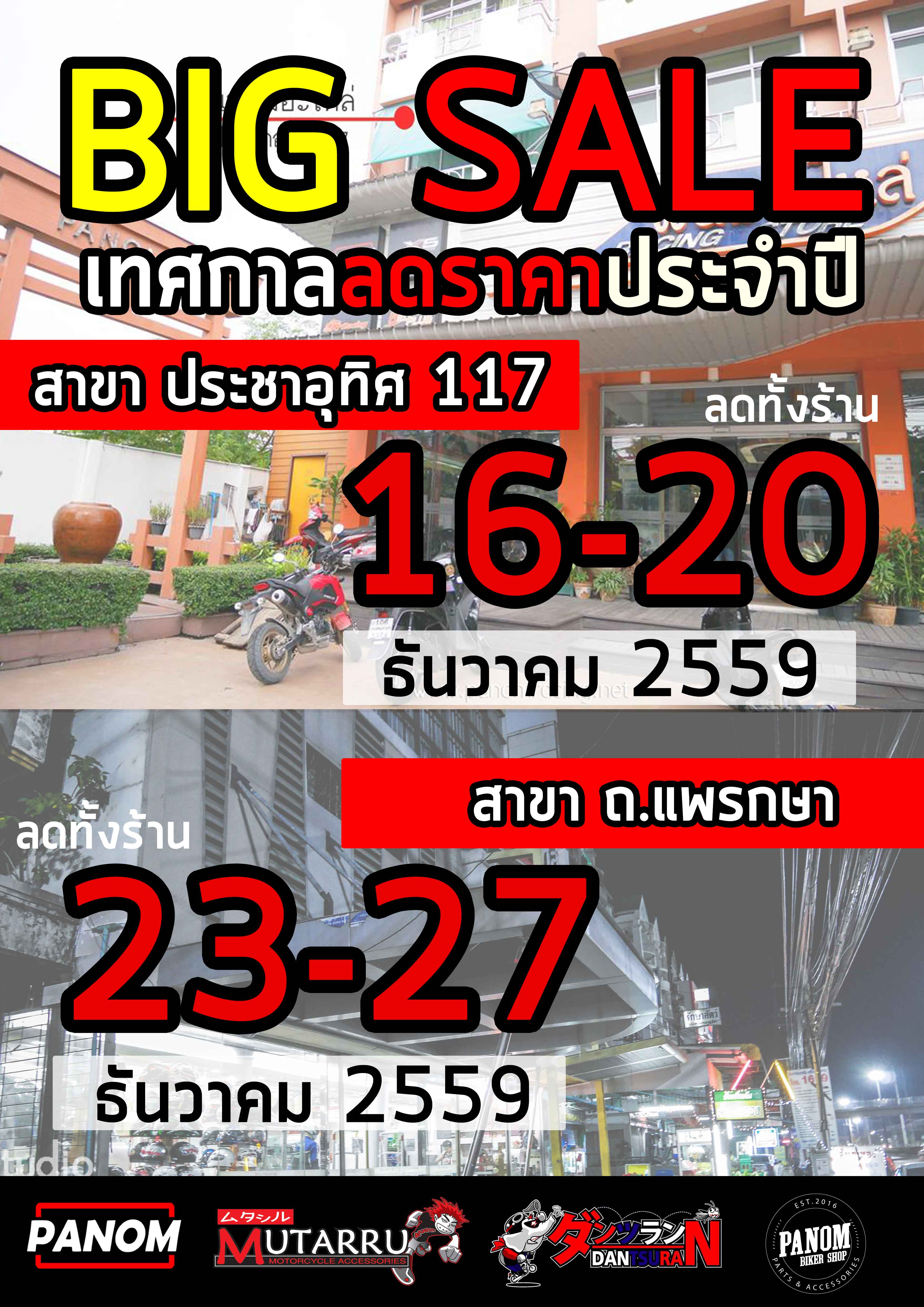 กลับมาอีกครั้งกับงานลดราคาครั้งยิ่งใหญ่ของทางร้านพนมอะไหล่ 1 ปีมีครั้งเดียวเท่านั้น ยังคงคอนเซ็ปต์เดิมคือ ลดทั้งร้าน จะมี 2 โซนคือ ภายนอกจะเป็นการลดราคาแบบจัดเต็ม และไม่รับเปลี่ยนสินค้าคืน เพราะลดหนักจริง และภายโซนในร้านก็ลดราคาจากปกติ ทุกชิ้น!! ซึ่งในปีนี้จะจัดขั้นในวันที่ 16-20 ธันวาคม 2559 ที่สาขาประชาอุทิศ 117 กรุงเทพ และวันที่ 23-27 ธันวาคม 2559 ที่สาขาแพรกษา สมุทรปราการ ต้อนรับปีใหม่ 2017 ซึ่งทางพนมอะไหล่จะปิดให้บริการช่วงเทศกาลปีใหม่วันที่ 29 ธันวาคม 2559 - 4 มกราคม 2560 และเปิดให้บริการอีกครั้งวันที่ 5 มกราคม 2560 ซึ่งงานนี้บอกเลยว่าพลาดไม่ได้ด้วยประการทั้งปวง ปีละครั้งก็กาปฏิทินเอาไว้กันได้เลย