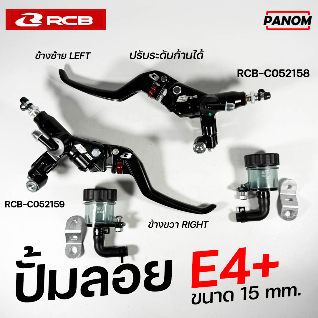 ปั้มลอย RCB E4+ ข้างขวา/ข้างซ้าย R/L ขนาด15มม. พร้อมกระปุกน้ำมันเบรค ก้านปรับระดับได้ สีดำ