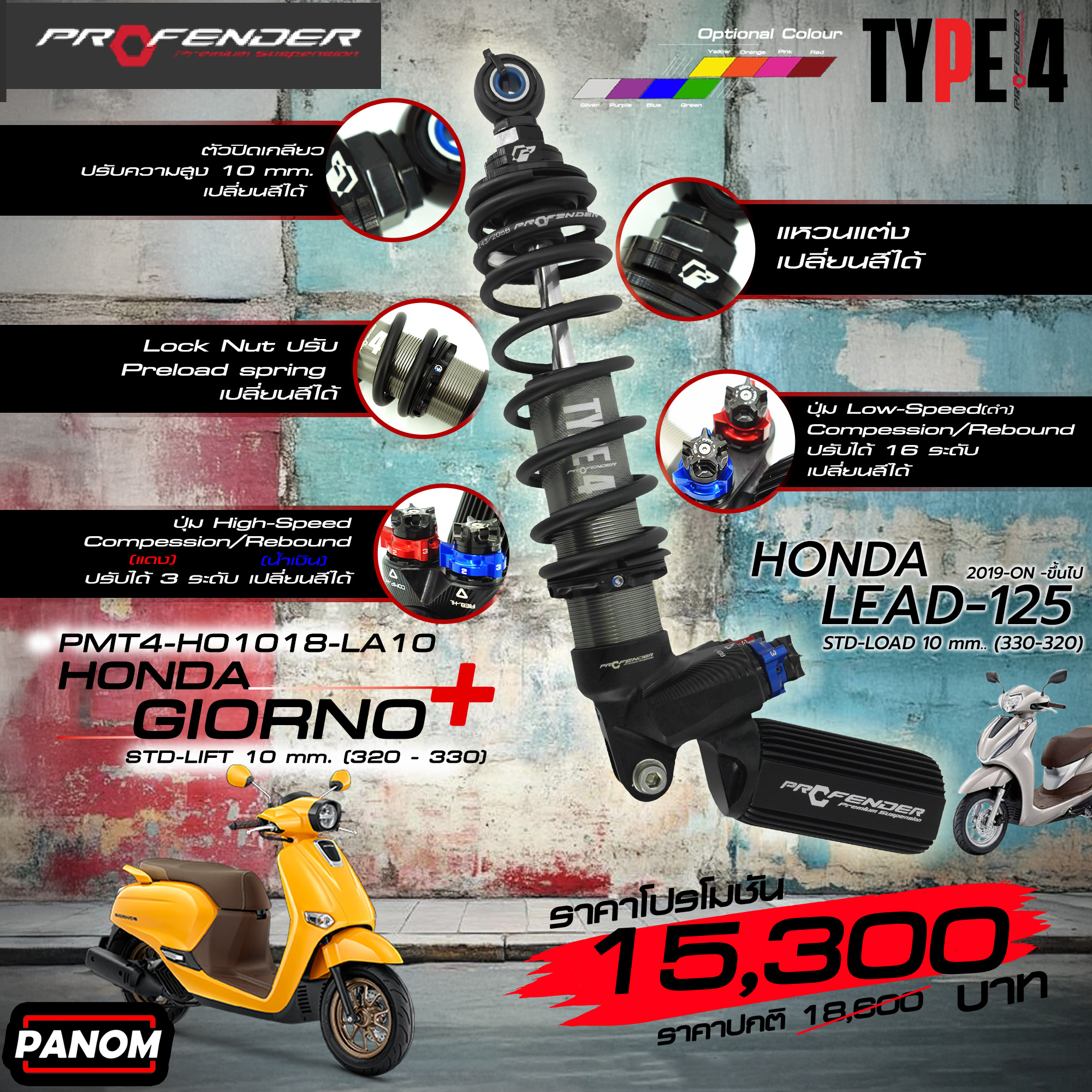 PROFENDER โช้คหลัง TYPE-4 GIORNO+125 '23>ON สูง320-330mm LEAD-125(19>ON) (330-320mm.) ปรับ10มม สีดำ