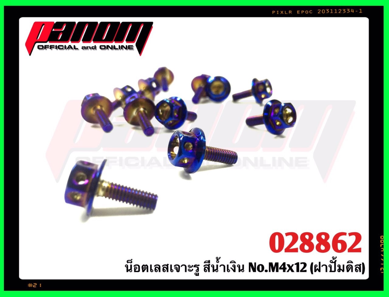 น็อต/เลส เจาะรู สีน้ำเงิน ฝาปั้มดิส NO. M4x12