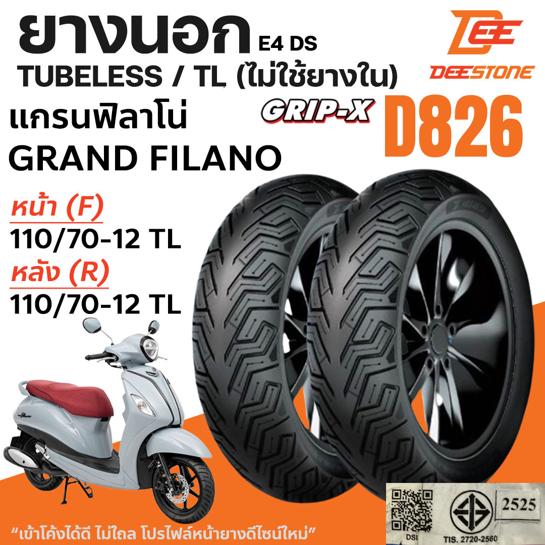 DEESTONE ยางนอก ยางมอเตอร์ไซค์ สำหรับ แกรนฟิลาโน่ GRAND FILANO 110/70-12 ขอบ12 T/L ไม่ใช้ยางใน
